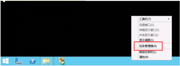 - 在云服务器中,右键单击 “任务栏”,选择【任务管理器】。如下图所示: